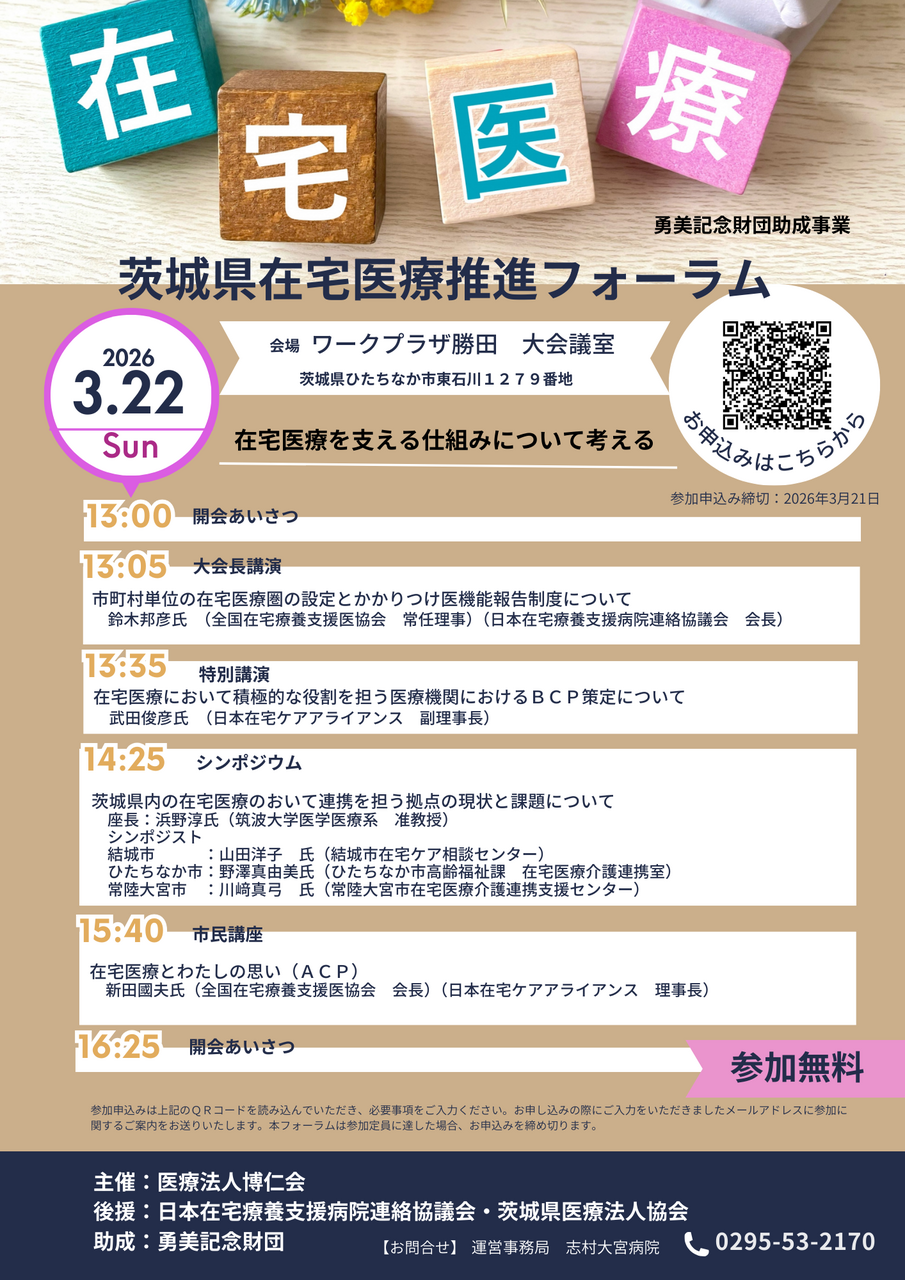 【2026年3月22日(日)開催】茨城県在宅医療推進フォーラム